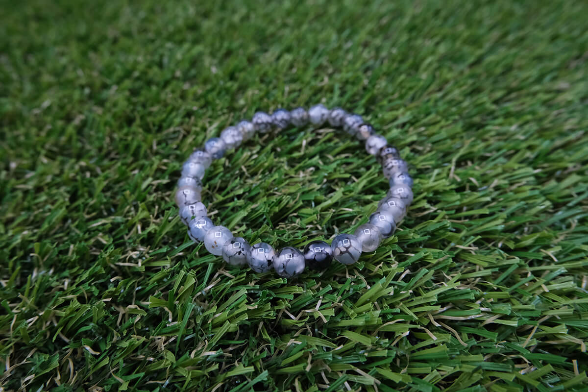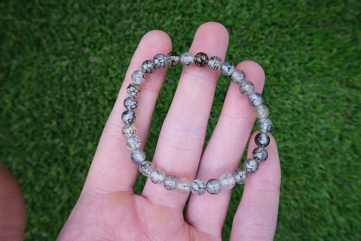Náramek z Achátu navlečený na pružné, transparentní gumičce.