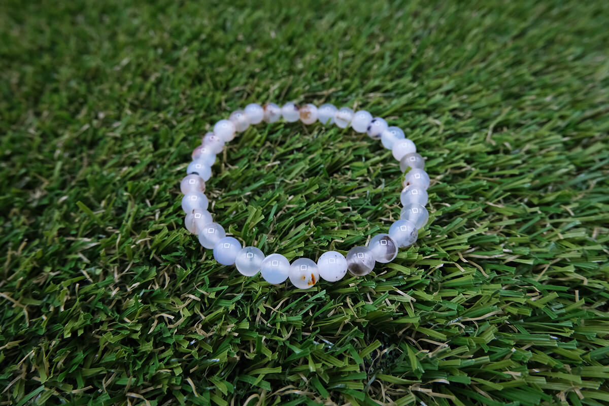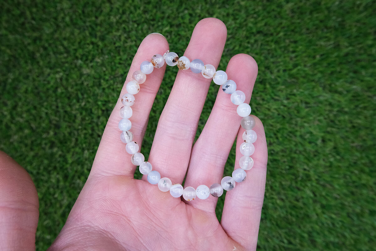 Náramek z Achátu navlečený na pružné, transparentní gumičce.