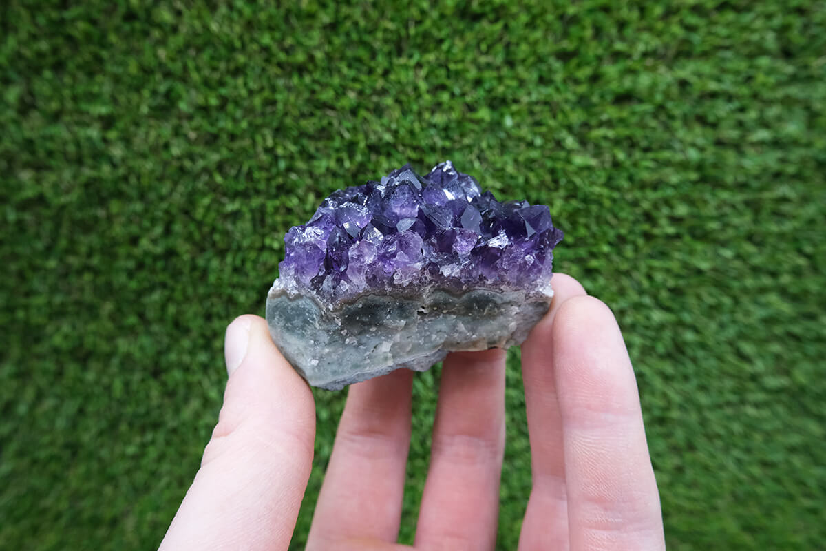 Ametyst je fialová odrůda křemene. Tvoří se v hydrotermálních žilách, což jsou zlomy v zemské kůře, které jsou naplněny horkými tekutinami bohatými na minerály. Tyto tekutiny mohou obsahovat rozpuštěný oxid křemičitý, který je hlavní složkou křemene, a také stopová množství železa a dalších nečistot. Jak se tekutiny ochlazují a tuhnou, vytvářejí krystaly křemene, které mohou za vhodných podmínek nabývat purpurového zbarvení charakteristické pro ametyst. Výsledné krystaly mohou časem růst a vytvářet ametystové geody a další struktury.