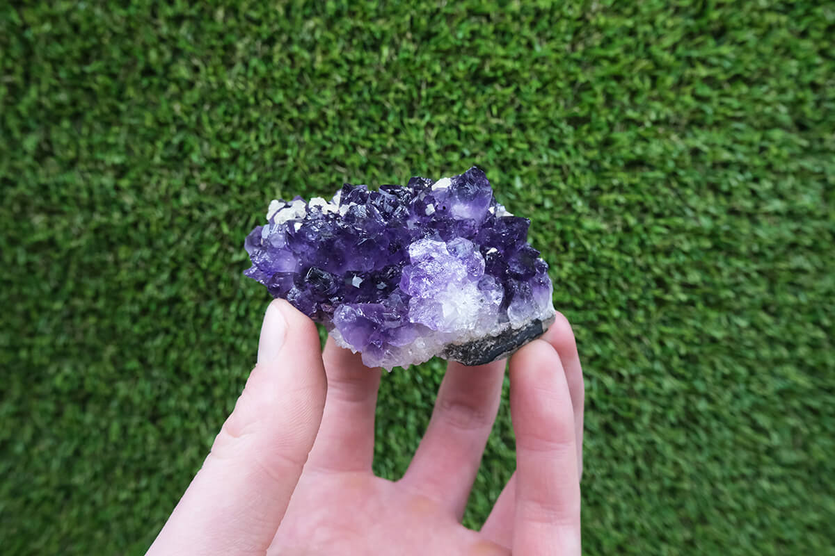 Ametyst je fialová odrůda křemene. Tvoří se v hydrotermálních žilách, což jsou zlomy v zemské kůře, které jsou naplněny horkými tekutinami bohatými na minerály. Tyto tekutiny mohou obsahovat rozpuštěný oxid křemičitý, který je hlavní složkou křemene, a také stopová množství železa a dalších nečistot. Jak se tekutiny ochlazují a tuhnou, vytvářejí krystaly křemene, které mohou za vhodných podmínek nabývat purpurového zbarvení charakteristické pro ametyst. Výsledné krystaly mohou časem růst a vytvářet ametystové geody a další struktury.