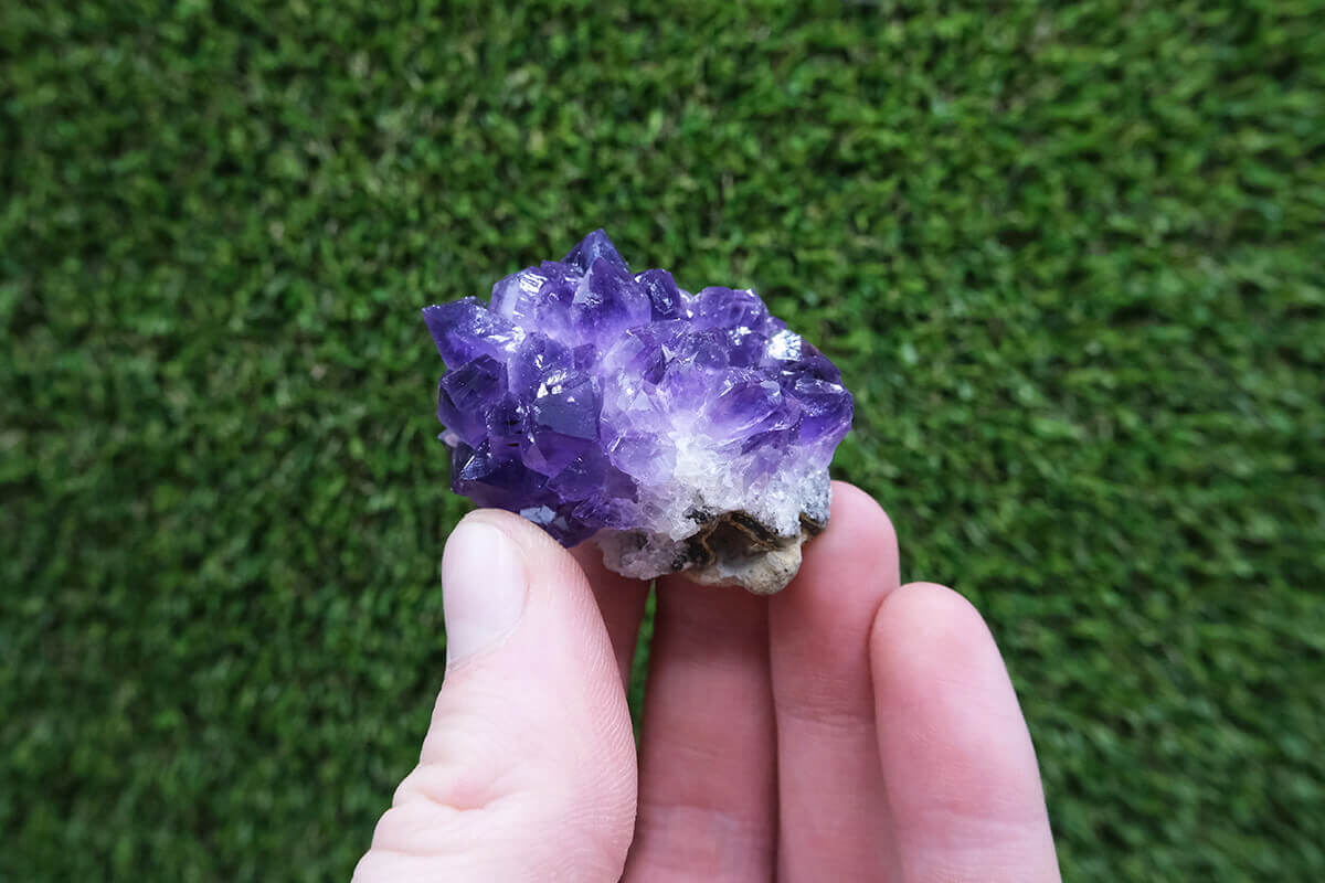 Ametyst je fialová odrůda křemene. Tvoří se v hydrotermálních žilách, což jsou zlomy v zemské kůře, které jsou naplněny horkými tekutinami bohatými na minerály. Tyto tekutiny mohou obsahovat rozpuštěný oxid křemičitý, který je hlavní složkou křemene, a také stopová množství železa a dalších nečistot. Jak se tekutiny ochlazují a tuhnou, vytvářejí krystaly křemene, které mohou za vhodných podmínek nabývat purpurového zbarvení charakteristické pro ametyst. Výsledné krystaly mohou časem růst a vytvářet ametystové geody a další struktury.