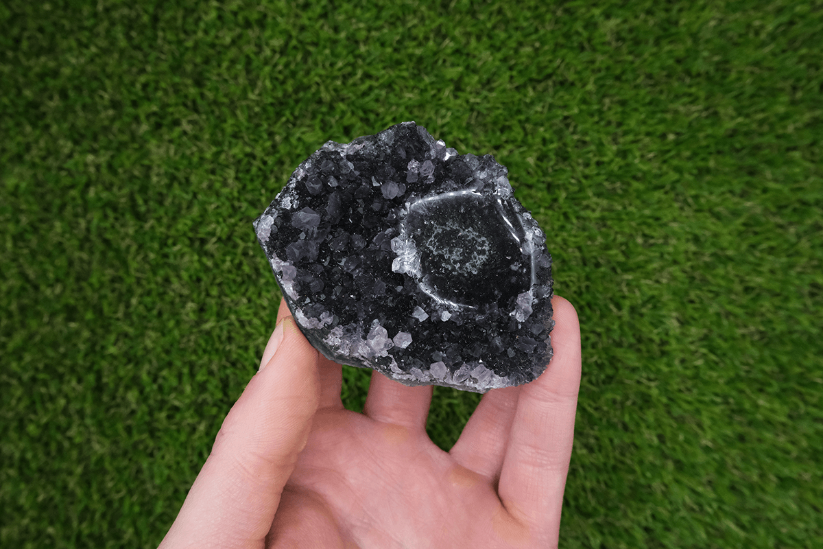 Ametystová formace s leštěným stalagmitem.