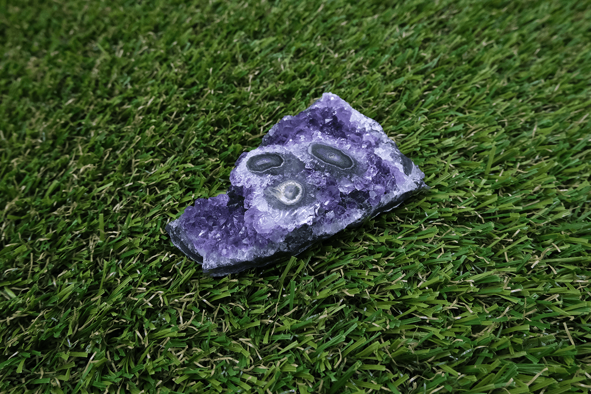 Ametystová formace se třemi leštěnými stalagmity.
