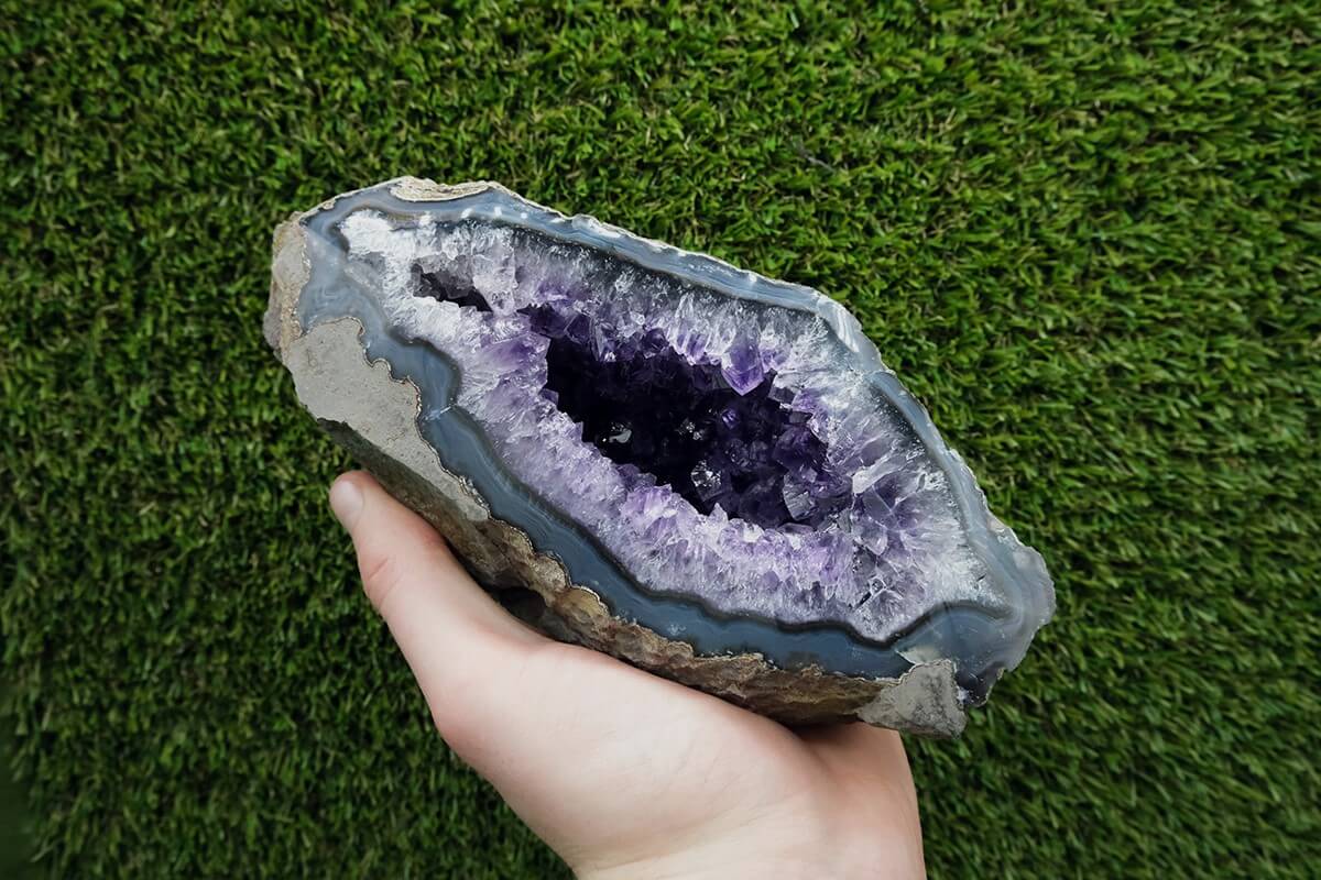 Ametyst je fialová odrůda křemene. Tvoří se v hydrotermálních žilách, což jsou zlomy v zemské kůře, které jsou naplněny horkými tekutinami bohatými na minerály. Tyto tekutiny mohou obsahovat rozpuštěný oxid křemičitý, který je hlavní složkou křemene, a také stopová množství železa a dalších nečistot. Jak se tekutiny ochlazují a tuhnou, vytvářejí krystaly křemene, které mohou za vhodných podmínek nabývat purpurového zbarvení charakteristické pro ametyst. Výsledné krystaly mohou časem růst a vytvářet ametystové geody a další struktury.