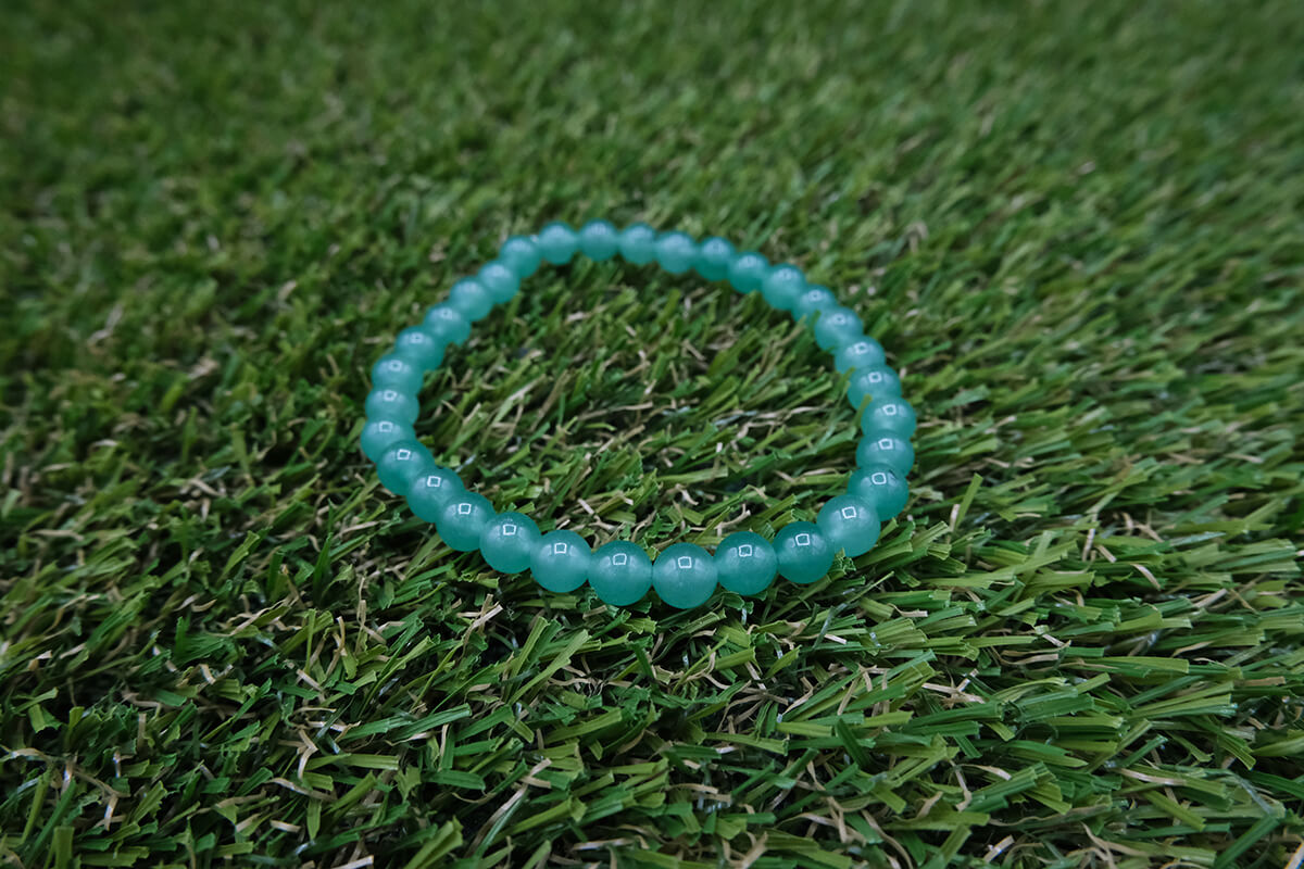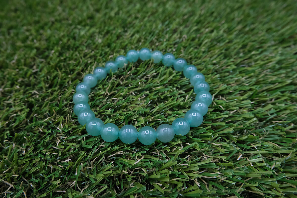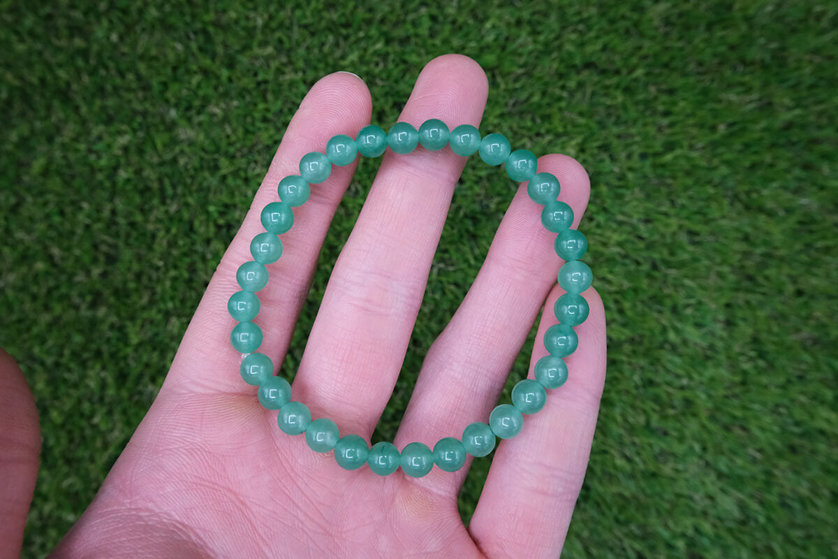 Náramek z Avanturínu navlečený na pružné, transparentní gumičce.
