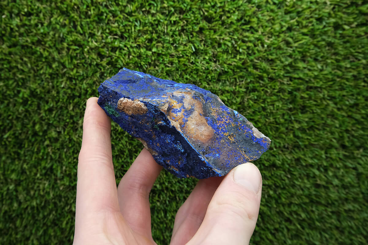 Je to měkký, sytě modrý minerál. Azurit je jedna ze dvou základních přírodních odrůd uhličitanu měďnatého, druhou, značně rozšířenější, je malachit. Díky stejnému složení často nacházíme azurit společně s malachitem.