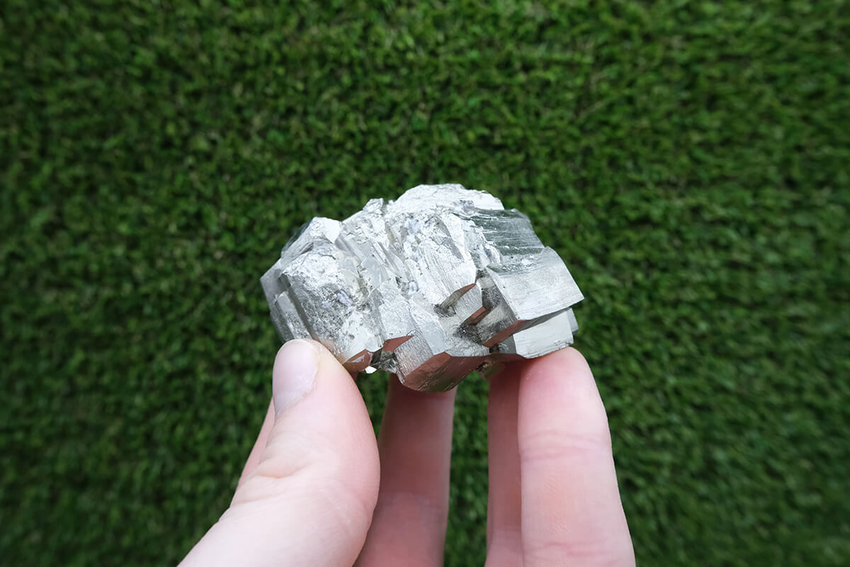 Název pyrit pochází z řeckého slova pyr, což znamená oheň, protože při úderu do něj vytváří jiskry. Má kovový lesk a svou barvou připomíná zlato.