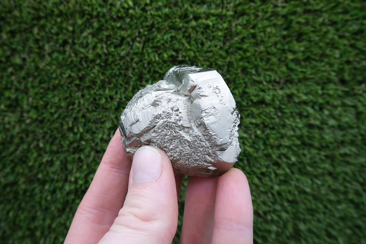 Název pyrit pochází z řeckého slova pyr, což znamená oheň, protože při úderu do něj vytváří jiskry. Má kovový lesk a svou barvou připomíná zlato.