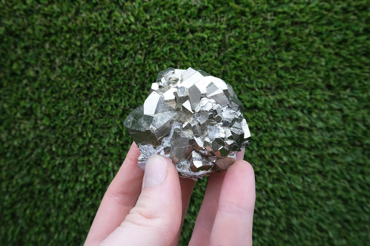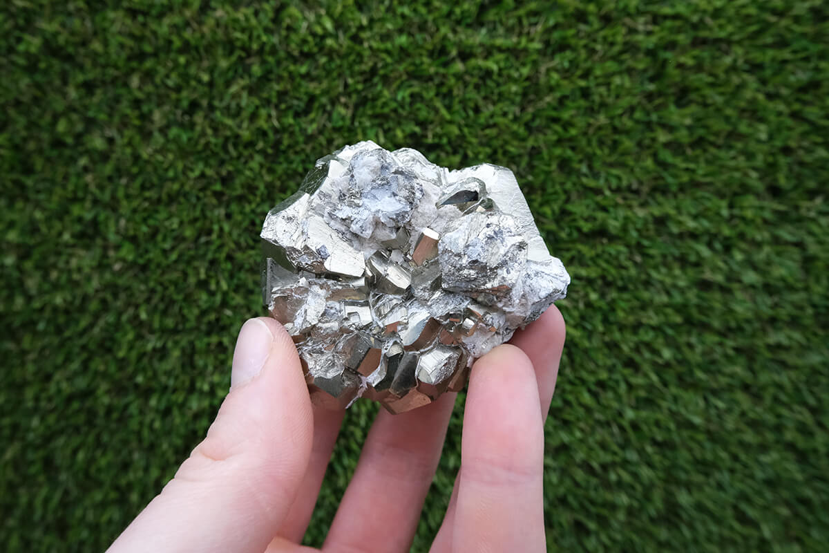 Název pyrit pochází z řeckého slova pyr, což znamená oheň, protože při úderu do něj vytváří jiskry. Má kovový lesk a svou barvou připomíná zlato.
