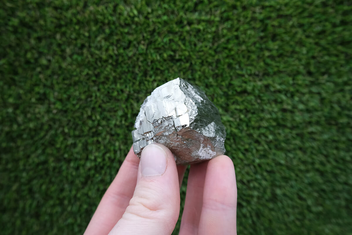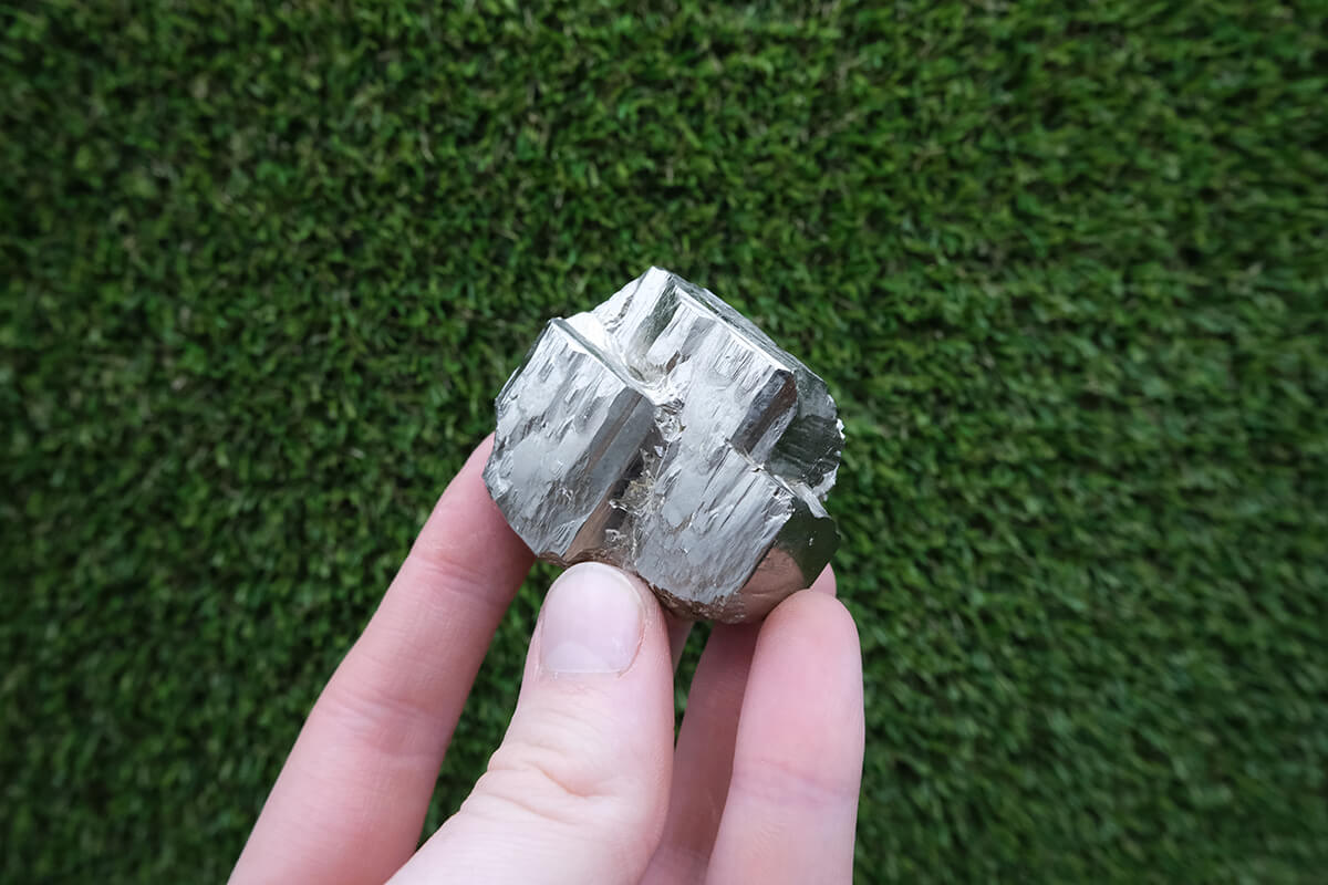 Název pyrit pochází z řeckého slova pyr, což znamená oheň, protože při úderu do něj vytváří jiskry. Má kovový lesk a svou barvou připomíná zlato.