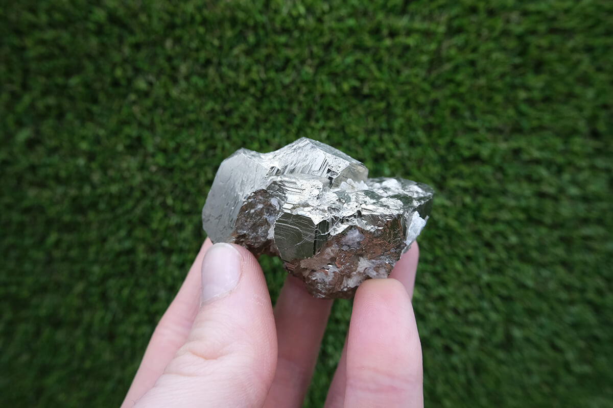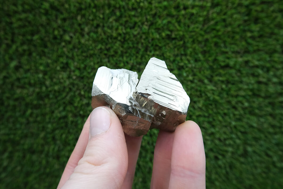 Název pyrit pochází z řeckého slova pyr, což znamená oheň, protože při úderu do něj vytváří jiskry. Má kovový lesk a svou barvou připomíná zlato.