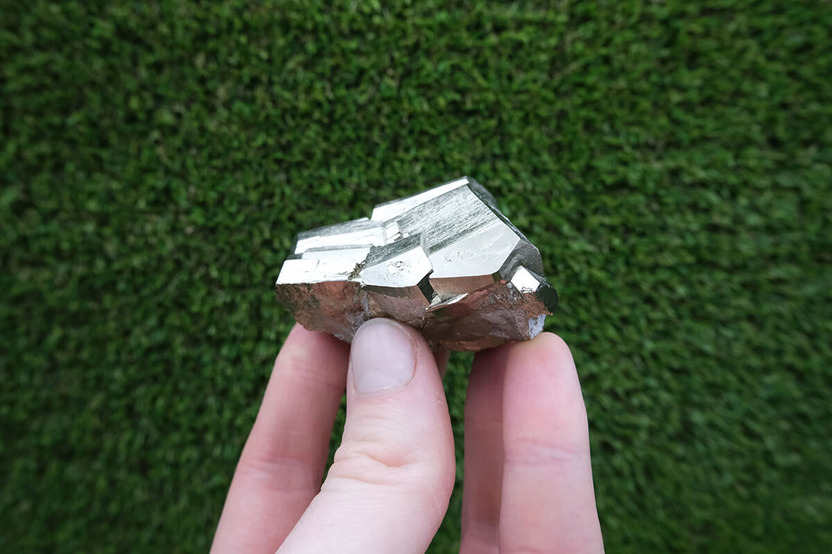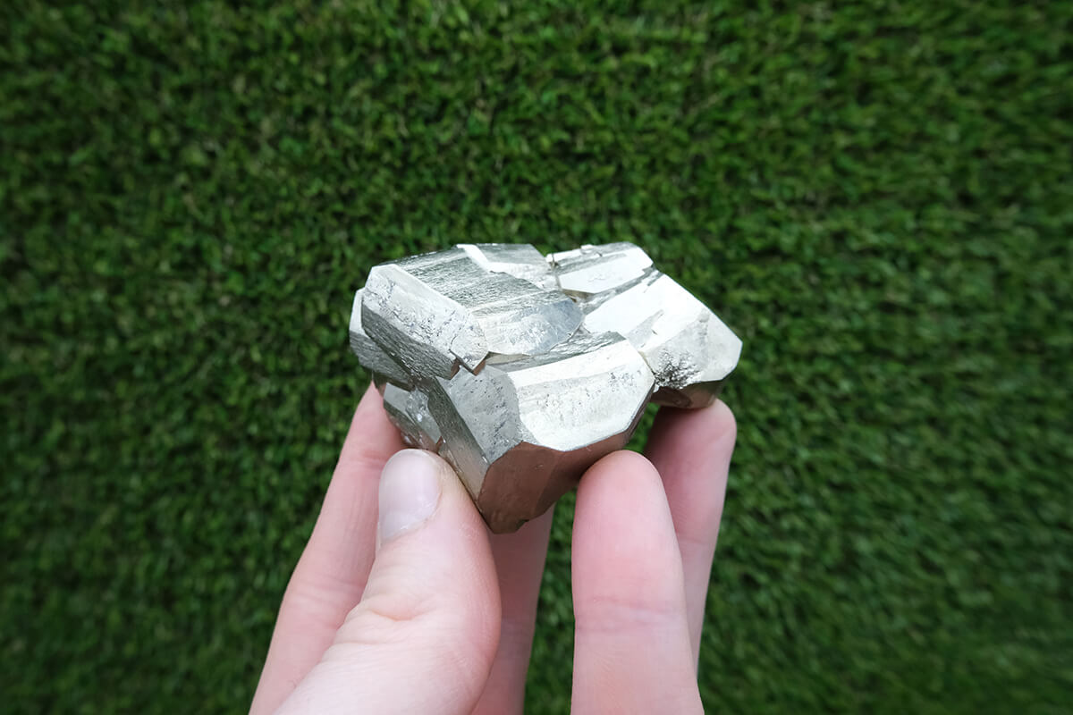 Název pyrit pochází z řeckého slova pyr, což znamená oheň, protože při úderu do něj vytváří jiskry. Má kovový lesk a svou barvou připomíná zlato.