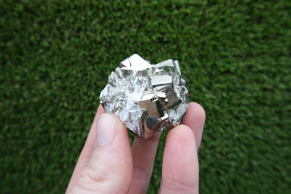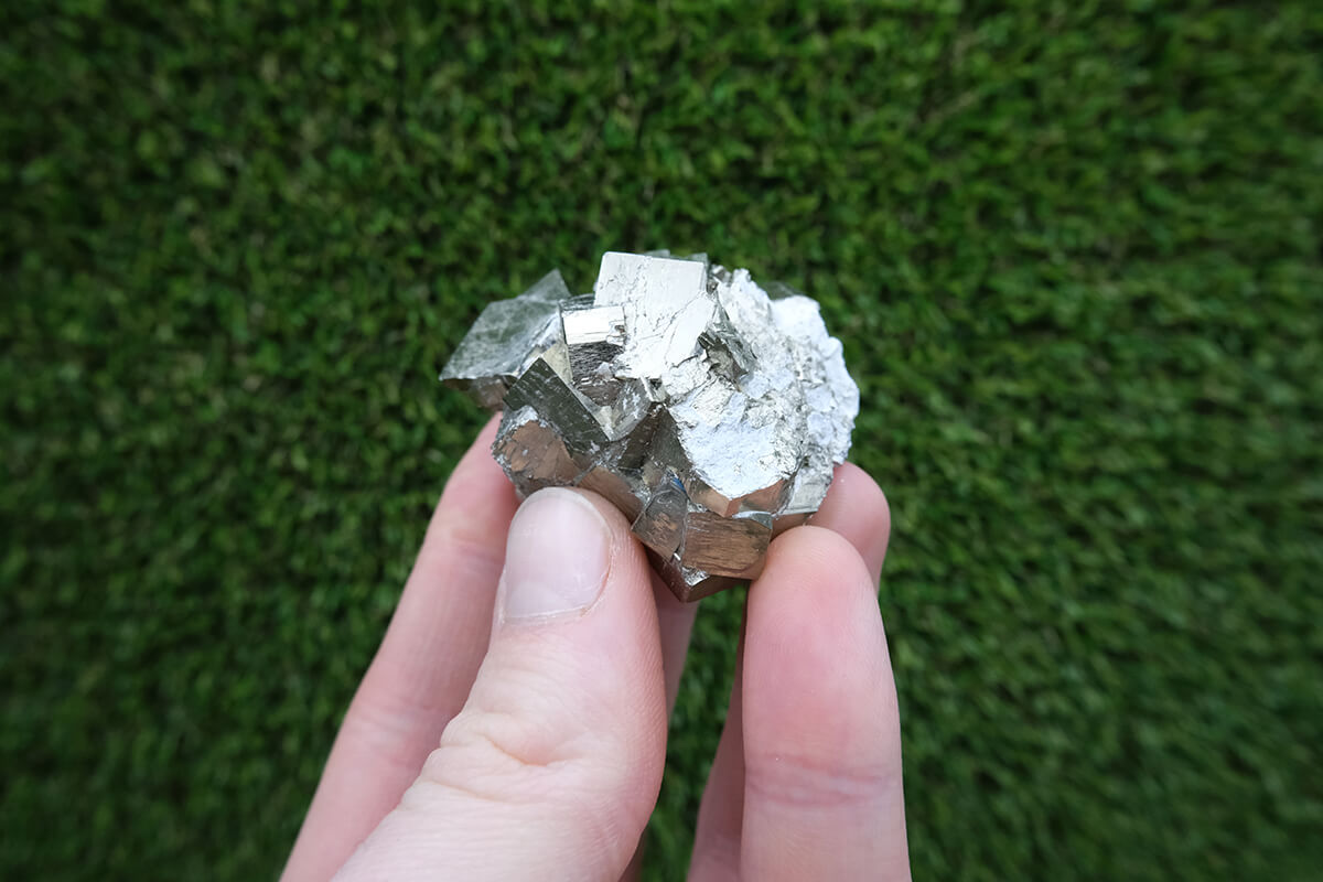 Název pyrit pochází z řeckého slova pyr, což znamená oheň, protože při úderu do něj vytváří jiskry. Má kovový lesk a svou barvou připomíná zlato.