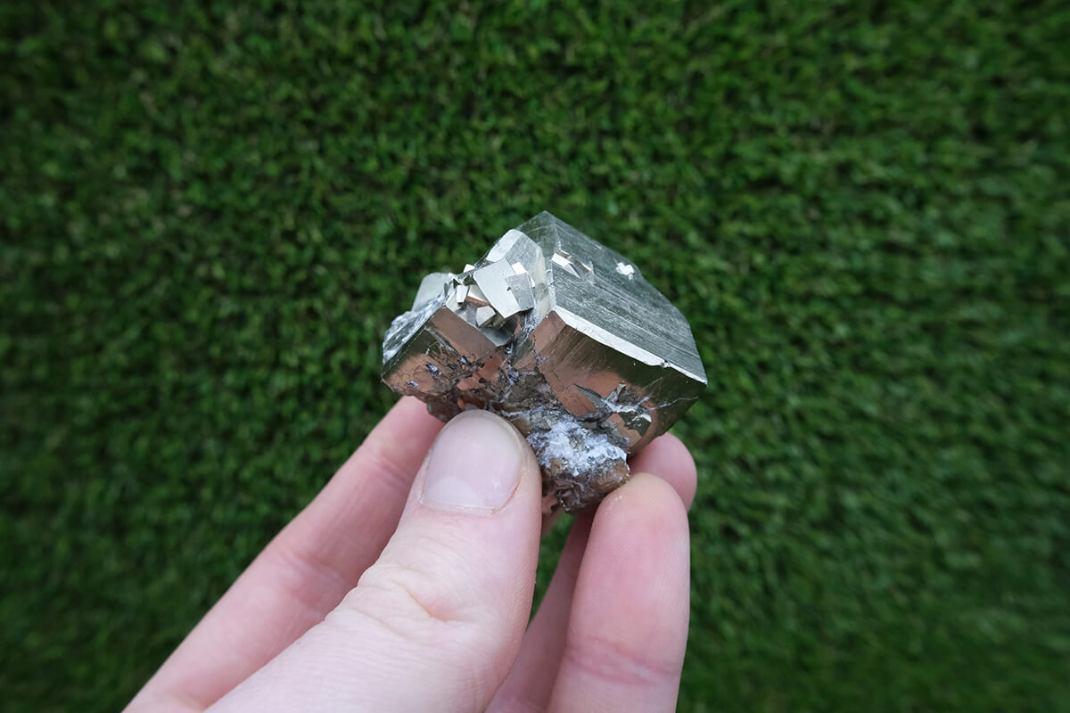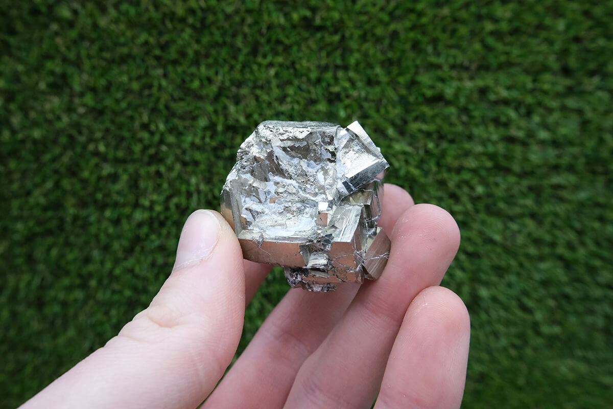 Název pyrit pochází z řeckého slova pyr, což znamená oheň, protože při úderu do něj vytváří jiskry. Má kovový lesk a svou barvou připomíná zlato.