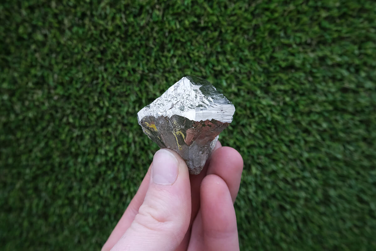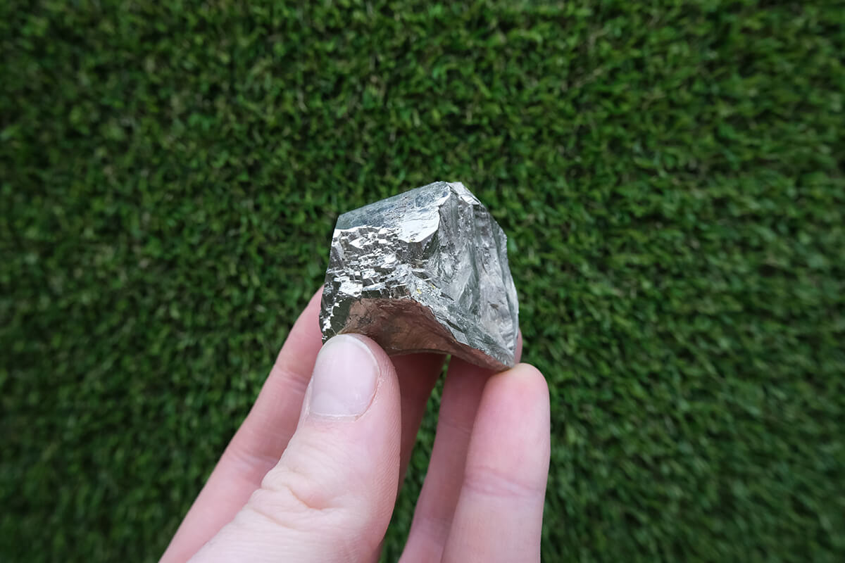 Název pyrit pochází z řeckého slova pyr, což znamená oheň, protože při úderu do něj vytváří jiskry. Má kovový lesk a svou barvou připomíná zlato.