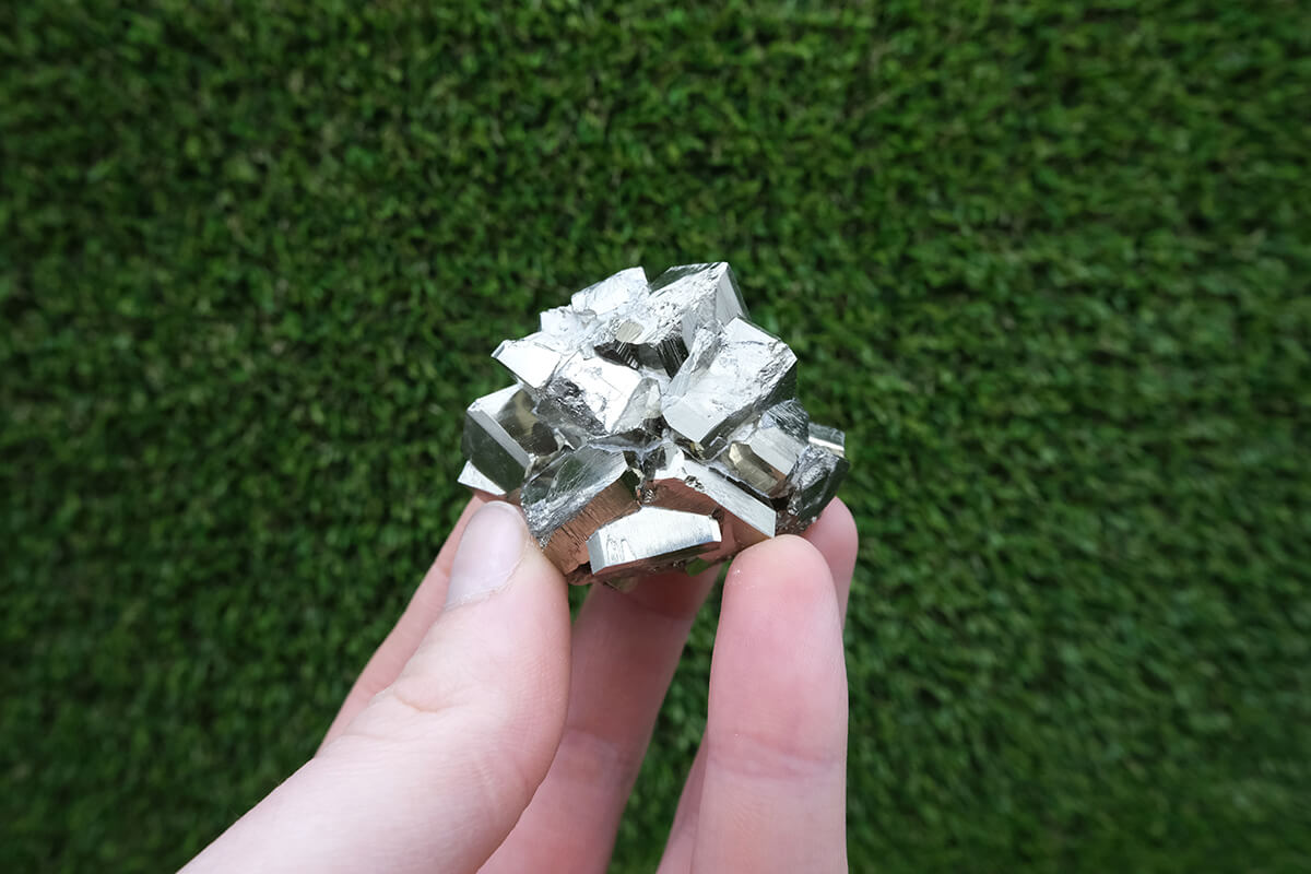 Název pyrit pochází z řeckého slova pyr, což znamená oheň, protože při úderu do něj vytváří jiskry. Má kovový lesk a svou barvou připomíná zlato.