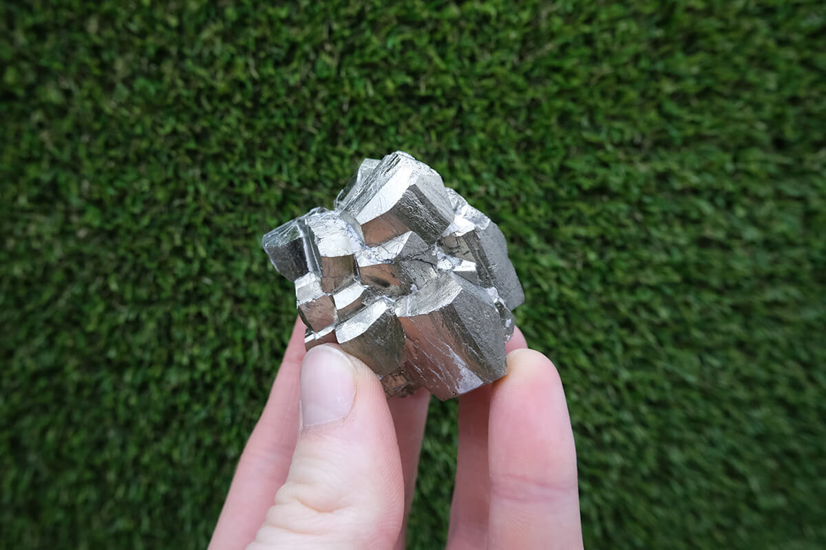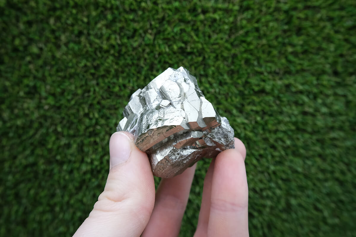 Název pyrit pochází z řeckého slova pyr, což znamená oheň, protože při úderu do něj vytváří jiskry. Má kovový lesk a svou barvou připomíná zlato.