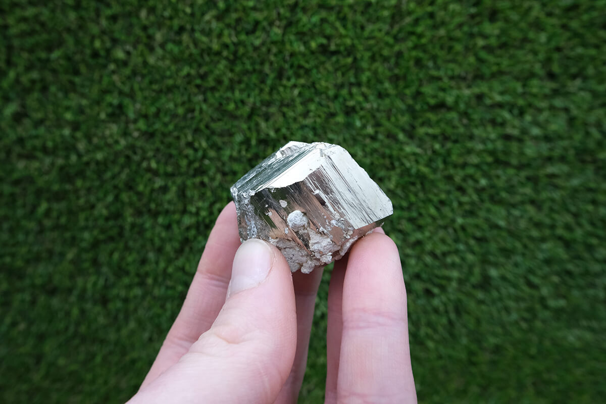 Název pyrit pochází z řeckého slova pyr, což znamená oheň, protože při úderu do něj vytváří jiskry. Má kovový lesk a svou barvou připomíná zlato.