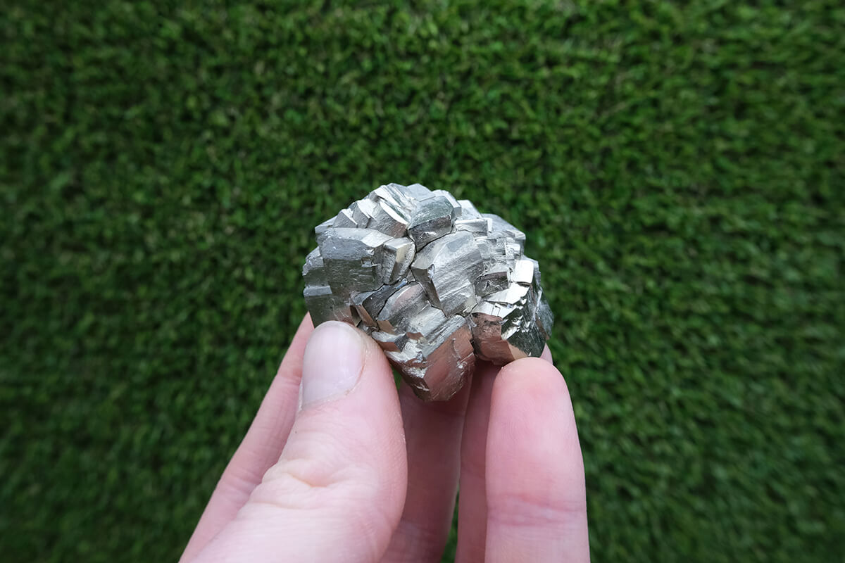 Název pyrit pochází z řeckého slova pyr, což znamená oheň, protože při úderu do něj vytváří jiskry. Má kovový lesk a svou barvou připomíná zlato.