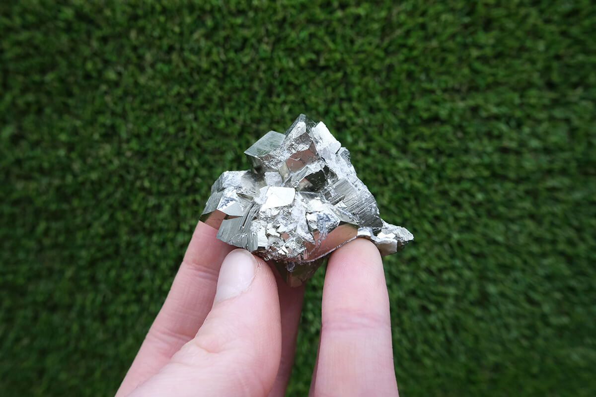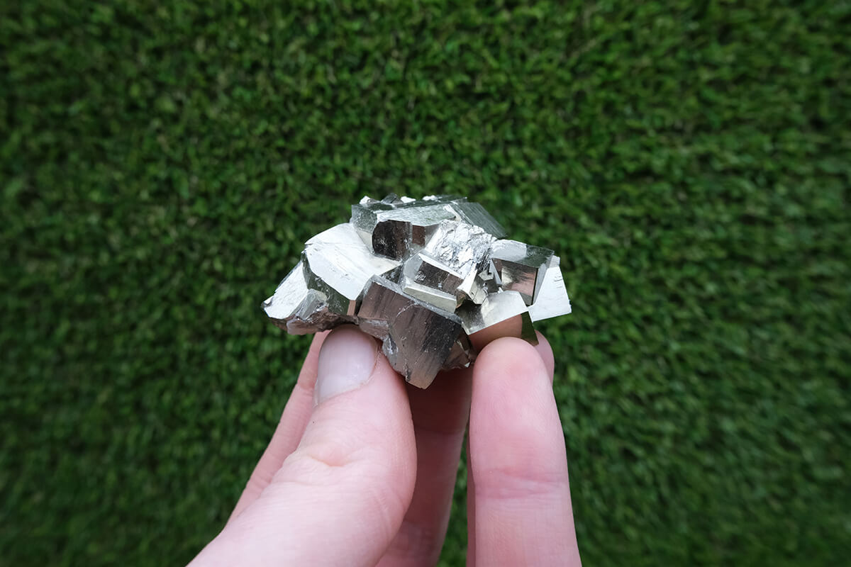 Název pyrit pochází z řeckého slova pyr, což znamená oheň, protože při úderu do něj vytváří jiskry. Má kovový lesk a svou barvou připomíná zlato.