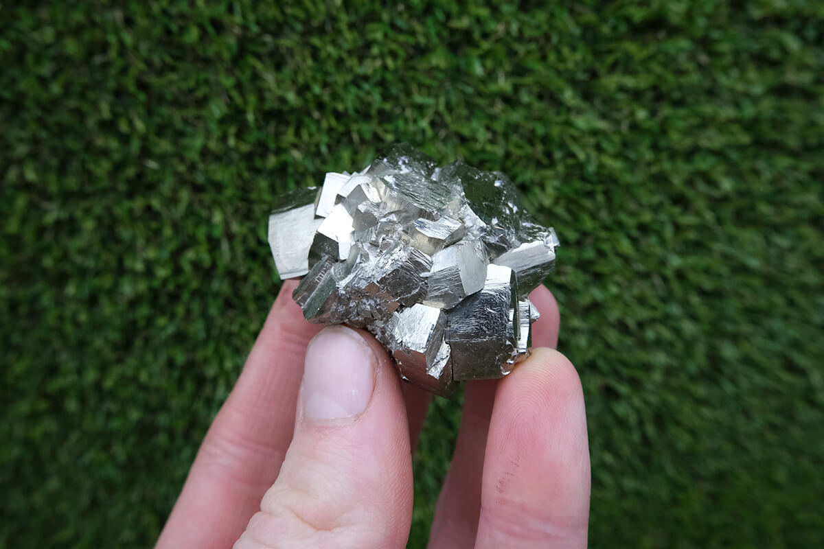 Název pyrit pochází z řeckého slova pyr, což znamená oheň, protože při úderu do něj vytváří jiskry. Má kovový lesk a svou barvou připomíná zlato.