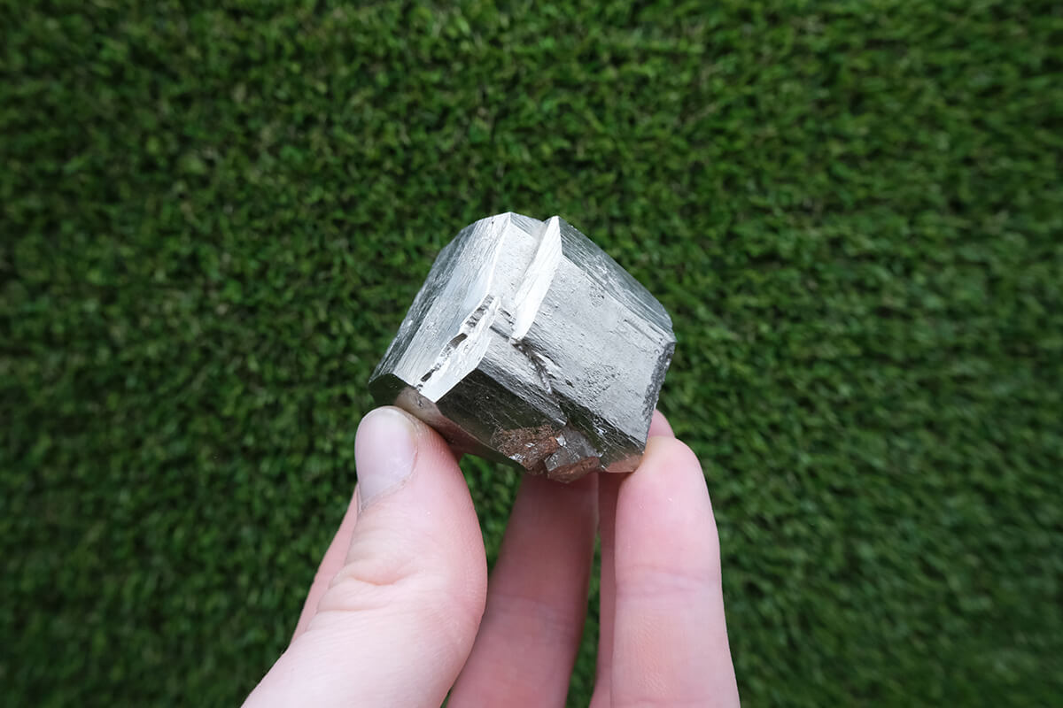 Název pyrit pochází z řeckého slova pyr, což znamená oheň, protože při úderu do něj vytváří jiskry. Má kovový lesk a svou barvou připomíná zlato.